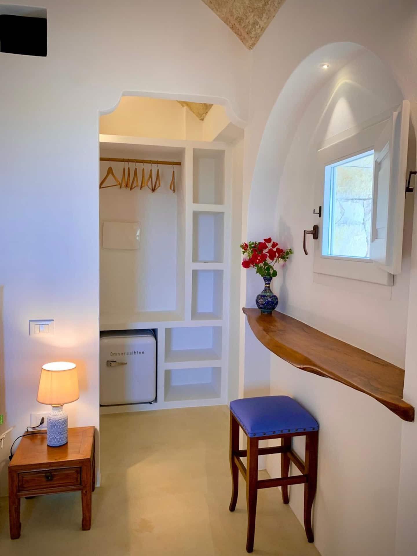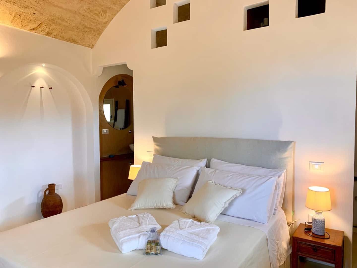 Kókoras Agri B&B is a quaint retreat nestled in the Salento countryside, located about two kilometers from the sea in a secluded and tranquil area. The property retains the genuine charm of traditional homes, featuring exposed bricks that harmonize beautifully with a meticulously designed contemporary interior, creating a warm and sophisticated atmosphere. The stunning sea view and direct connection to nature make this spot perfect for those looking to slow down and indulge in a relaxing stay.